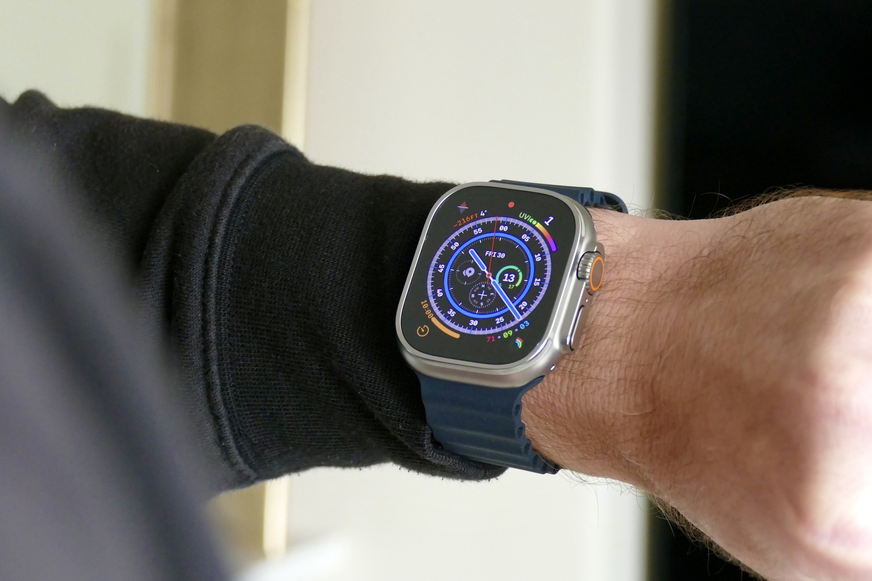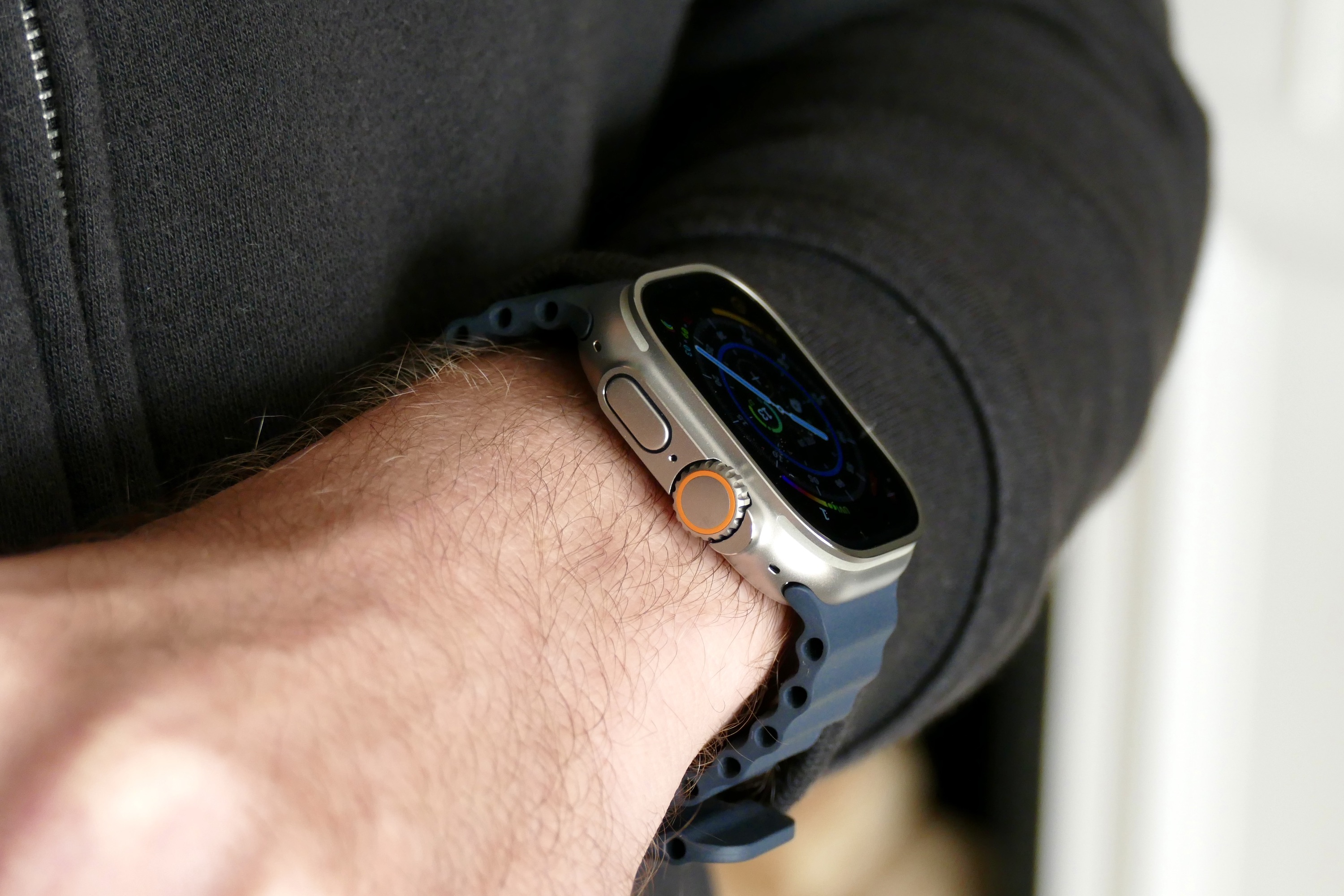 When you turn off the Water Lock after the watch has been in the water, it fizzes and whirs as it spits out any unwanted droplets, giving it a surprisingly mechanical feel — like it’s almost alive. It’s still a smartwatch, but this, along with the purposeful looks and go-anywhere attitude, gives the Apple Watch Ultra a surprising amount of character. That character (and the size) made me wear it with my sleeve tucked behind it, showing it off, something I didn’t really do with the Apple Watch Series 7.